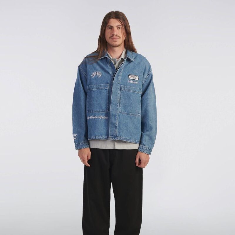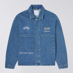 La giacca EDWIN Oshino Uniform è una giacca dalla vestibilità regolare con toppe e disegni cuciti sul davanti e sulle maniche. La giacca è realizzata in denim Victory Blue Denim 100% cotone.