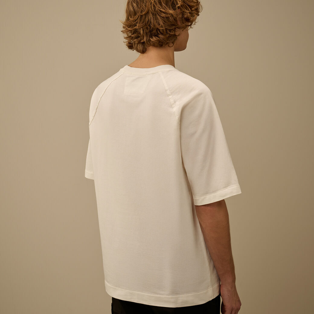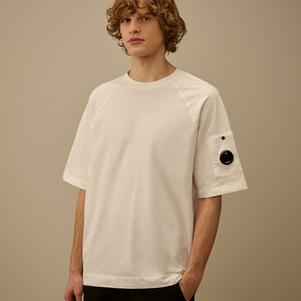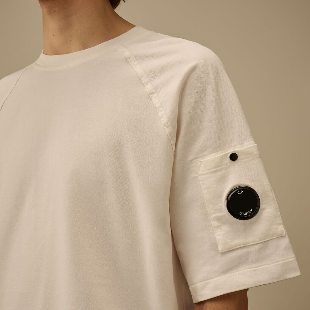 Felpa a maniche corte realizzata in fleece di cotone leggero, un tessuto morbido e traspirante che garantisce comfort quotidiano. Il modello presenta un girocollo a costine, maniche raglan e l’iconica Lente di C.P. Company sulla manica. Made in Italy. Regular fit.