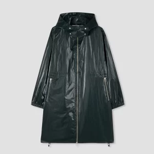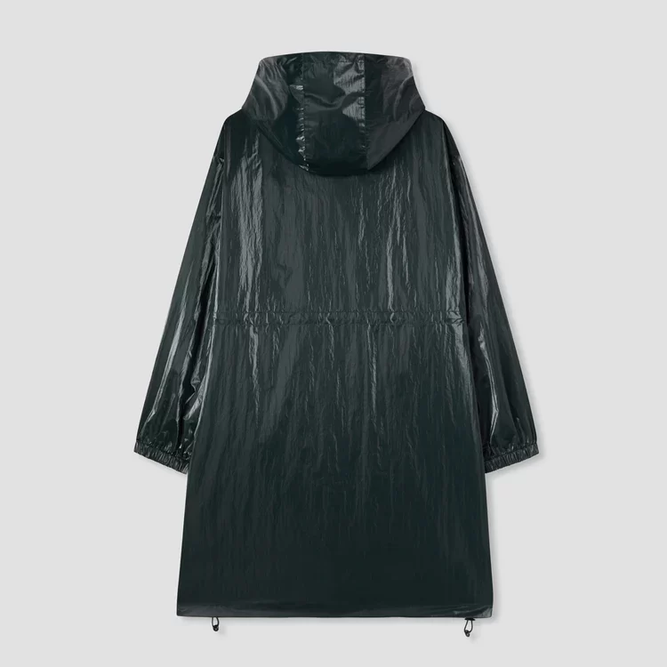 Parka in nylon riciclato effetto lucido con doppia cerniera comodo anche per le giornate di pioggia in bicicletta. Coulisse interna e in fondo per fittarlo as you want!